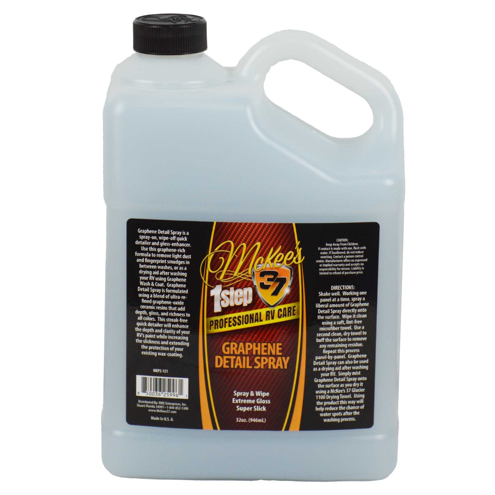 Achieve a showroom shine in seconds with McKee's 37Professional RV Graphene Detail Spray — a spray-on, wipe-off quick detailer and gloss enhancer.
