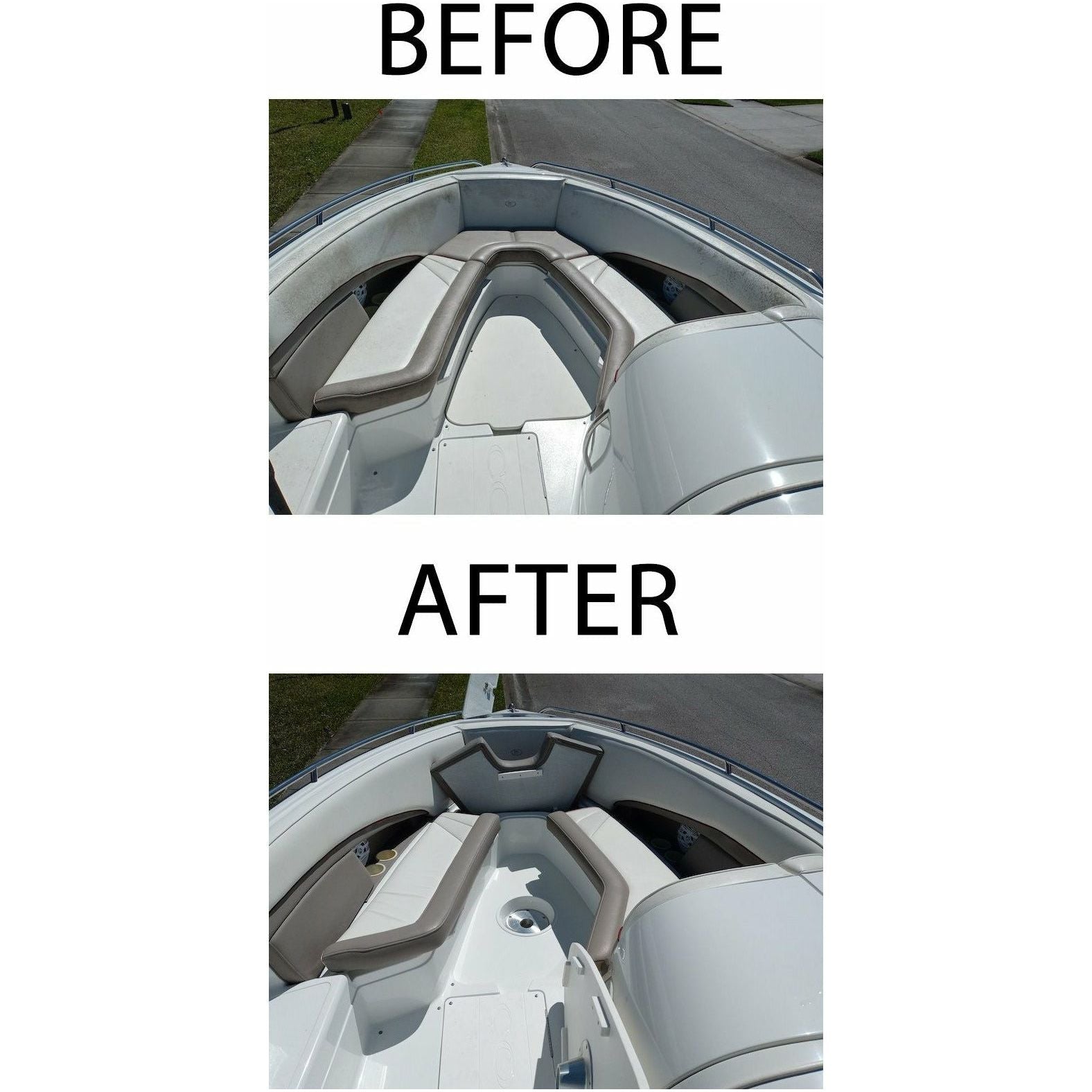 Nautical One Xtreme Mildew Remover is a viscous cleaner designed to cut through years of mold and mildew, leaving your vinyl seat cushions and rubber bumpers looking new. This thick, gel-like formula clings to vertical surfaces, allowing maximum dwell time so minimum agitation is required. Simply spray on, allow to dwell for a minute or two, and rinse off to reveal a clean surface. Use in conjunction with a rush for stubborn stains. Your vinyl seat cushions have never looked this good! Nautical One Xtreme Mildew Remover solves an issue that plagues all boaters - mold and mildew! The inside and outside of your boat is a feeding ground for mold and mildew, which is why we developed a cleaner that actually works! Nautical One Xtreme Mildew Remover is the number one solution for removing stubborn mold and mildew stains. Simply spray on, allow to dwell, and rinse off! Only the most stubborn stains will require a brush.