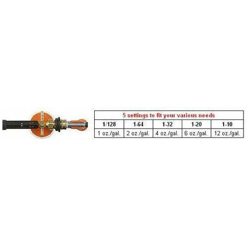 Customized Ratios - Can be set from 1oz. per gallon to 12 oz. per gallon. (Note: this range is affected by the viscosity of the chemical.)
