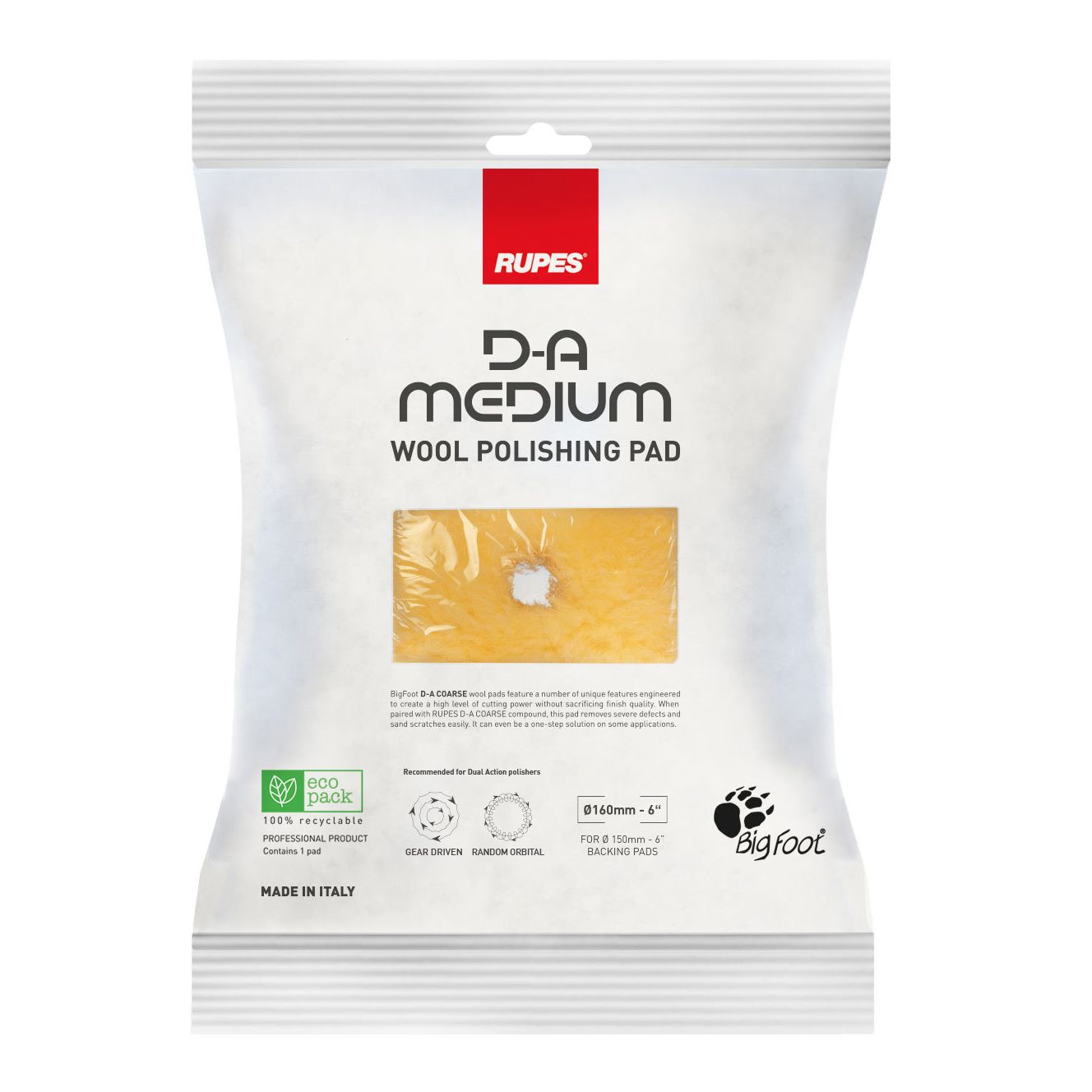 The secret to the impressive cutting and finishing abilities of the RUPES Medium Yellow Wool Polishing Pad lies in the 15 mm fiber length. This soft and flexible wool paired with a soft and flexible yellow foam backing, besides cutting moderate defects, also guarantees excellent finishing ability on most surfaces.